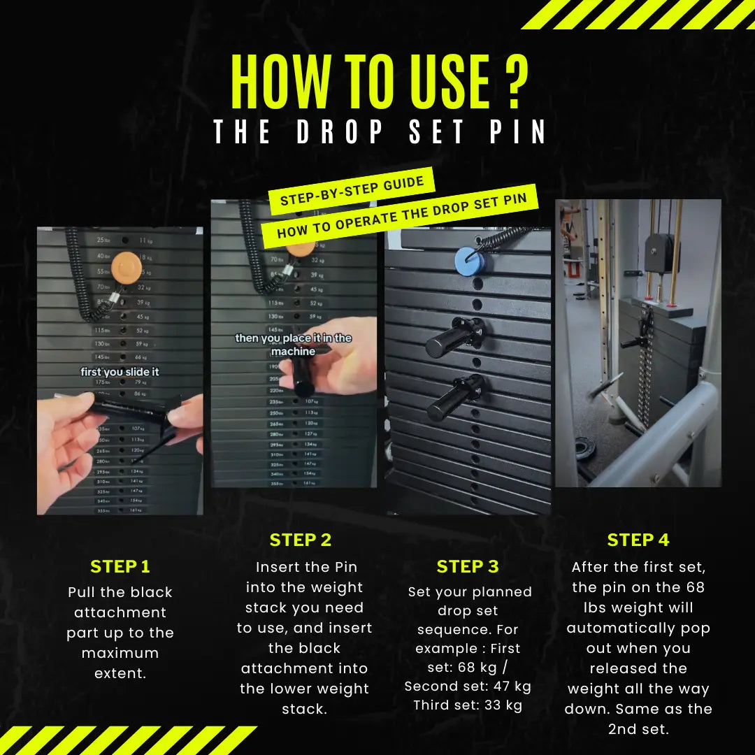With the Drop Set Pin, you’re not just adjusting weights — you're enhancing your entire approach to strength training. No more wasting time or energy on manual weight changes. Focus on what truly matters: building strength and achieving your fitness goals faster.